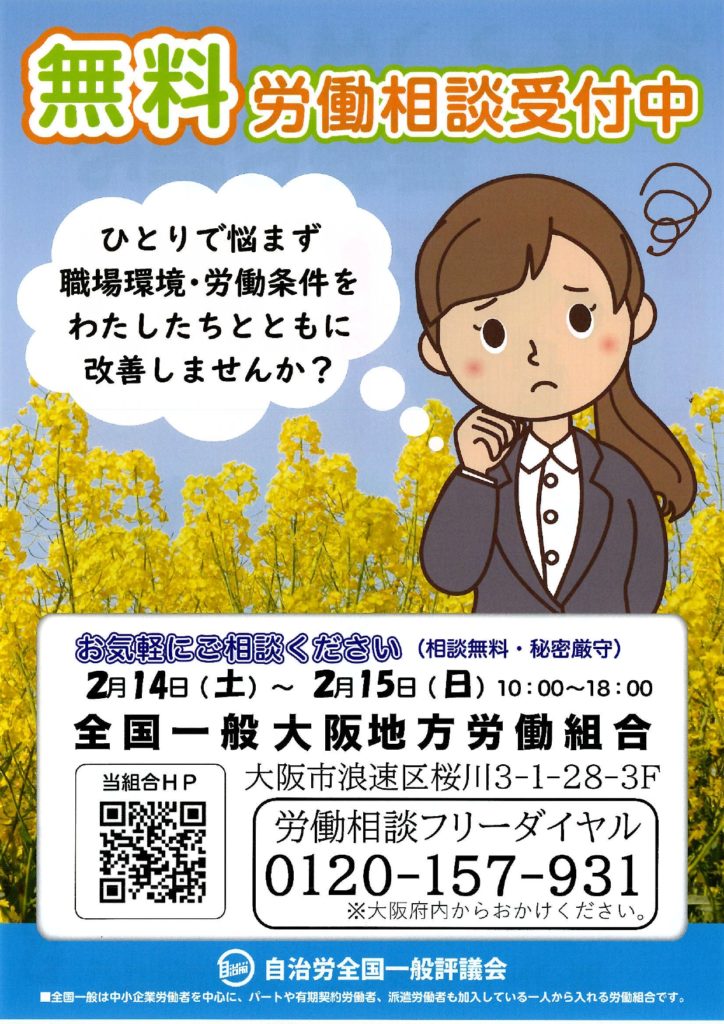 お仕事に関するお悩みは、一人で悩まずにお気軽にご相談ください。全国一般大阪地方労働組合に属する各組合への有力情報等もお待ちしております。