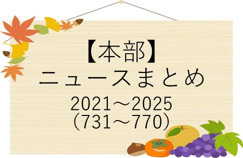 本部ニュース 2021~2025 ニュースバックナンバー 2025.11.19 本部ニュースは次のページへ移行しました。閲覧されたい項目をクリックすると、該当ページへリンクされます。 2021~2022 2022~2023 741~745 746~750 2023~2024 751~755 756~760 2024~2025 761~765 766~770